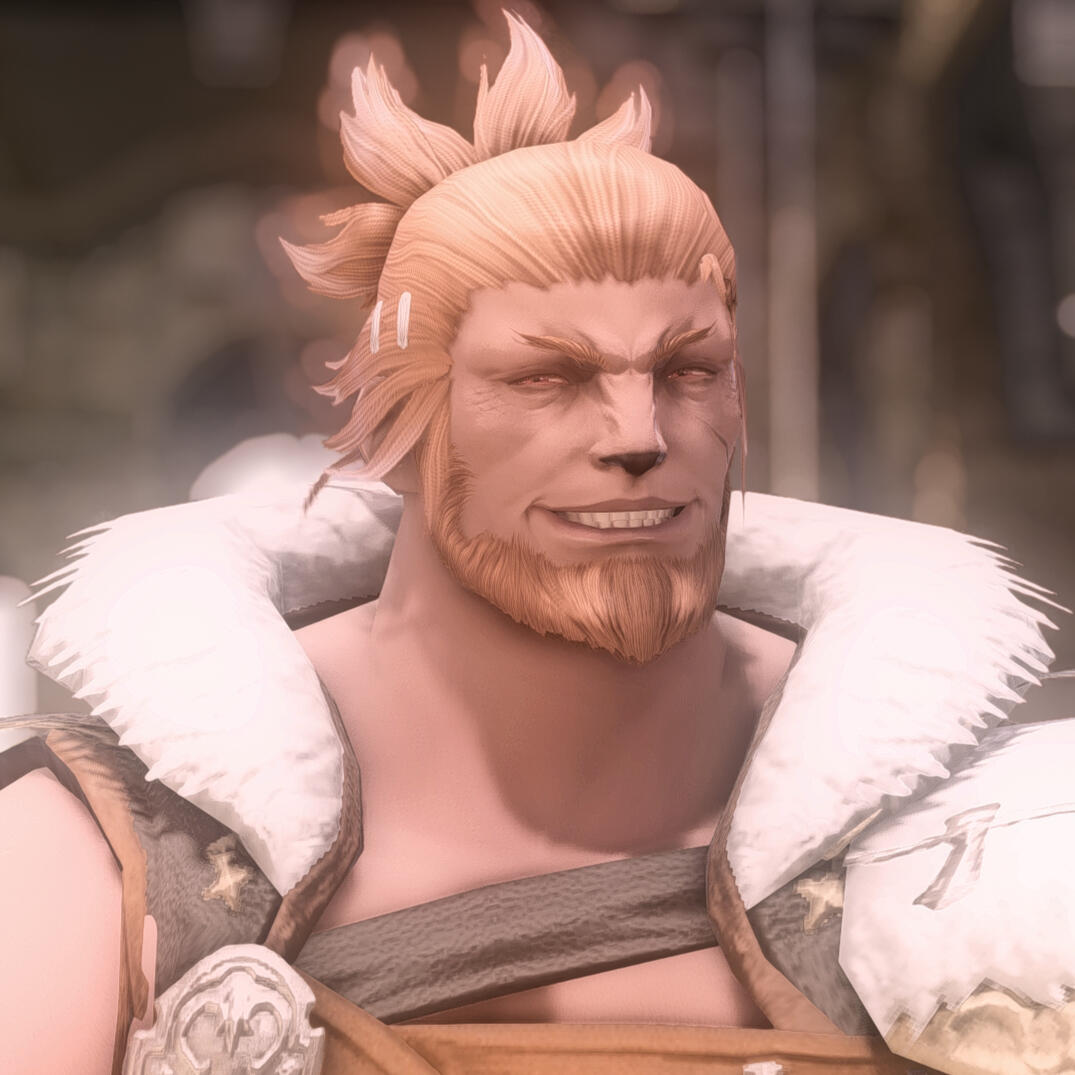 It was by the grace of the gods that a kindly Hellsguard man chanced upon Sweaty and took him in, welcoming him to a new home in The Farreach. There he would become the first and only son of a Roegadyn couple who loved him dearly.They named him Ydelboewen, the old language for "noble roar".Against the harsh heat of the environment, Sweaty matured into a fine man and finer Warrior, but he knew he was different to his brethren in a way he could never reconcile.Taking a name in common Eorzean as tradition, Sweaty Ass—aptly named for his intolerance to heat—took to the roads to ply his trade as a mercenary, all while searching for meaning in his origins.