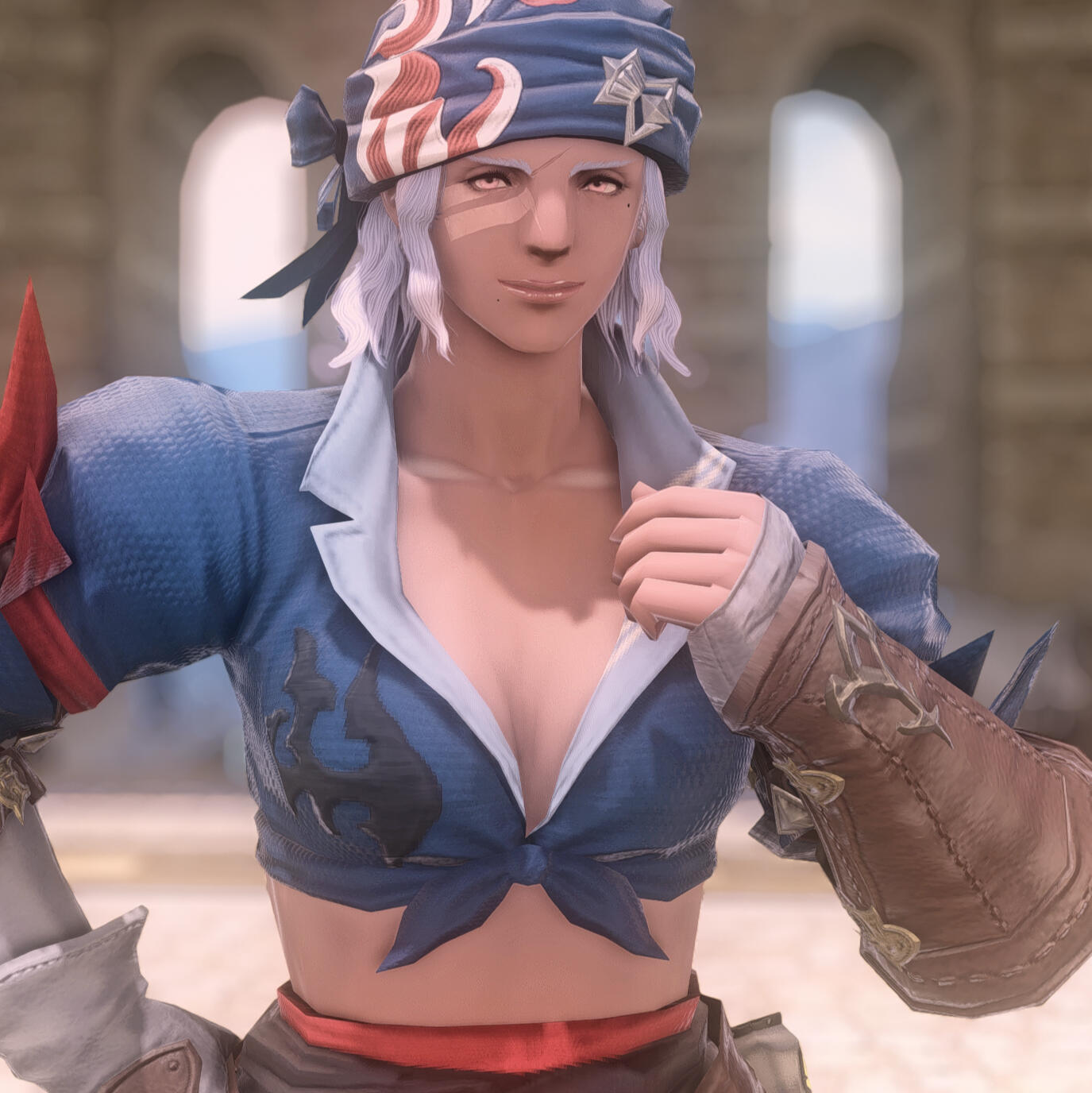 Sweaty's dearest friend and fiancé has shared in the hardships of many adventurers, having been travelling and fighting for justice until very recently. With a new lease on life and a man by his side who loves him even when it's hard for him to love himself, Hotter Whiteguy travels Eorzea's many restaurants and bars, flirting all the while.His soft good looks have swayed many hearts, and Hotter often finds himself surrounded by admirers, but his love of Sweaty is true and his loyalty will last till death do they part.His favourite drink is vanilla Coke.